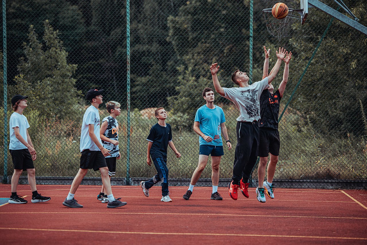Obóz koszykarsko-przygodowy w Jurze dla dzieci 12–16 lat. Treningi koszykówki, sportowe wyzwania, jurajskie atrakcje i świetna wakacyjna atmosfera.